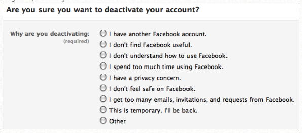 In either case, click on “Deactivate My Account” if you’re sure that’s exactly what you wish to do. Now it’s time to go through the onslaught, starting with your password once again (just in case somebody sees you visited and decides it ‘d be a great practical joke to delete your account):.